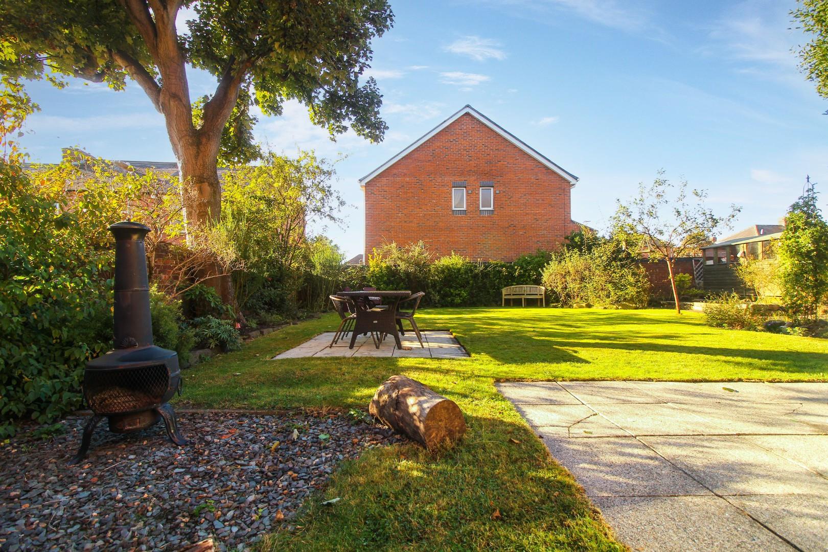 The outdoor space is a garden enthusiast’s dream, with a well-established back garden, lush lawn, mature trees, and a patio area perfect for al fresco dining. A private gated driveway offers off-road parking for up to five cars.